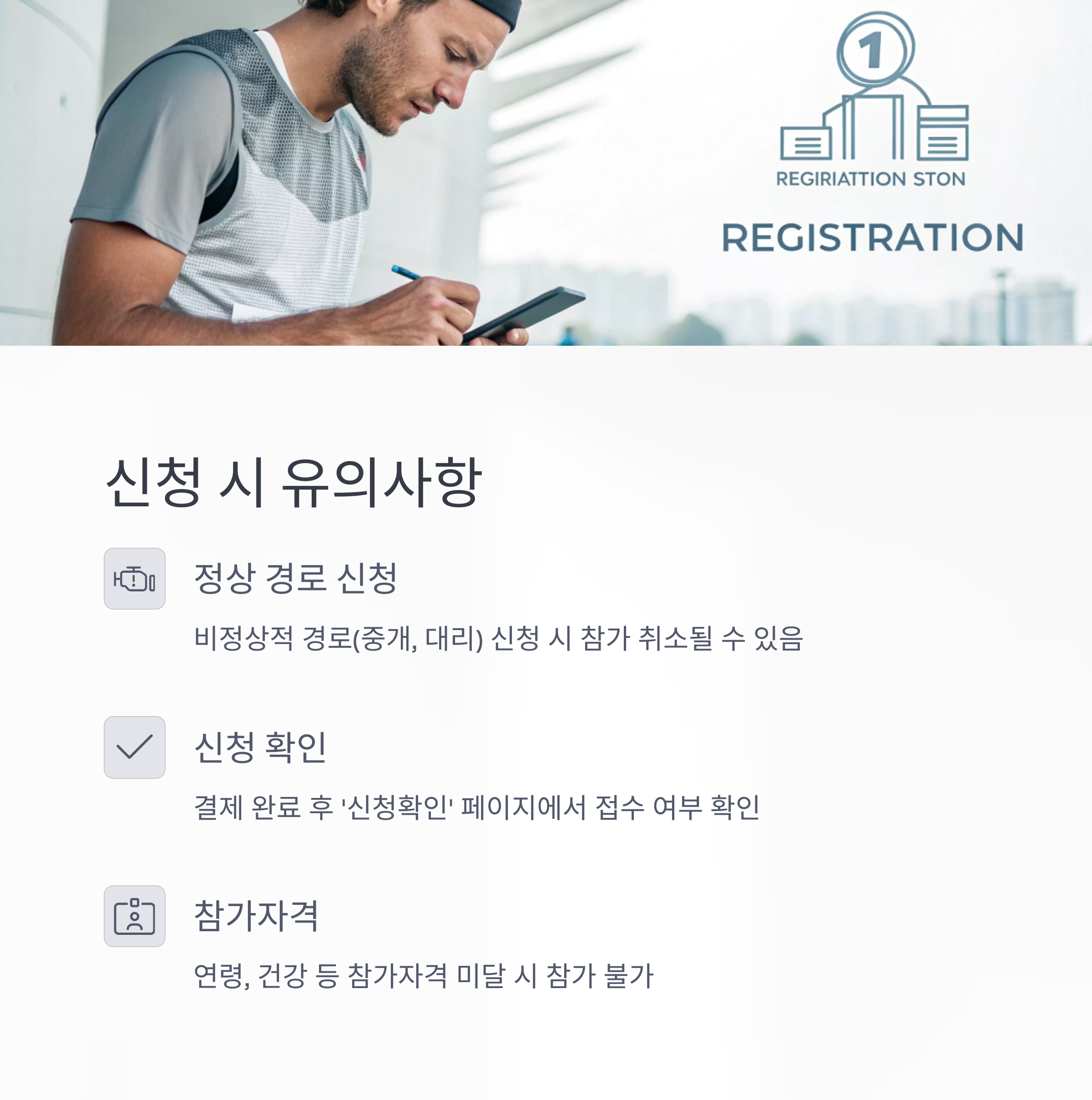 - 보험 가입 및 참가비 결제 후 신청 완료