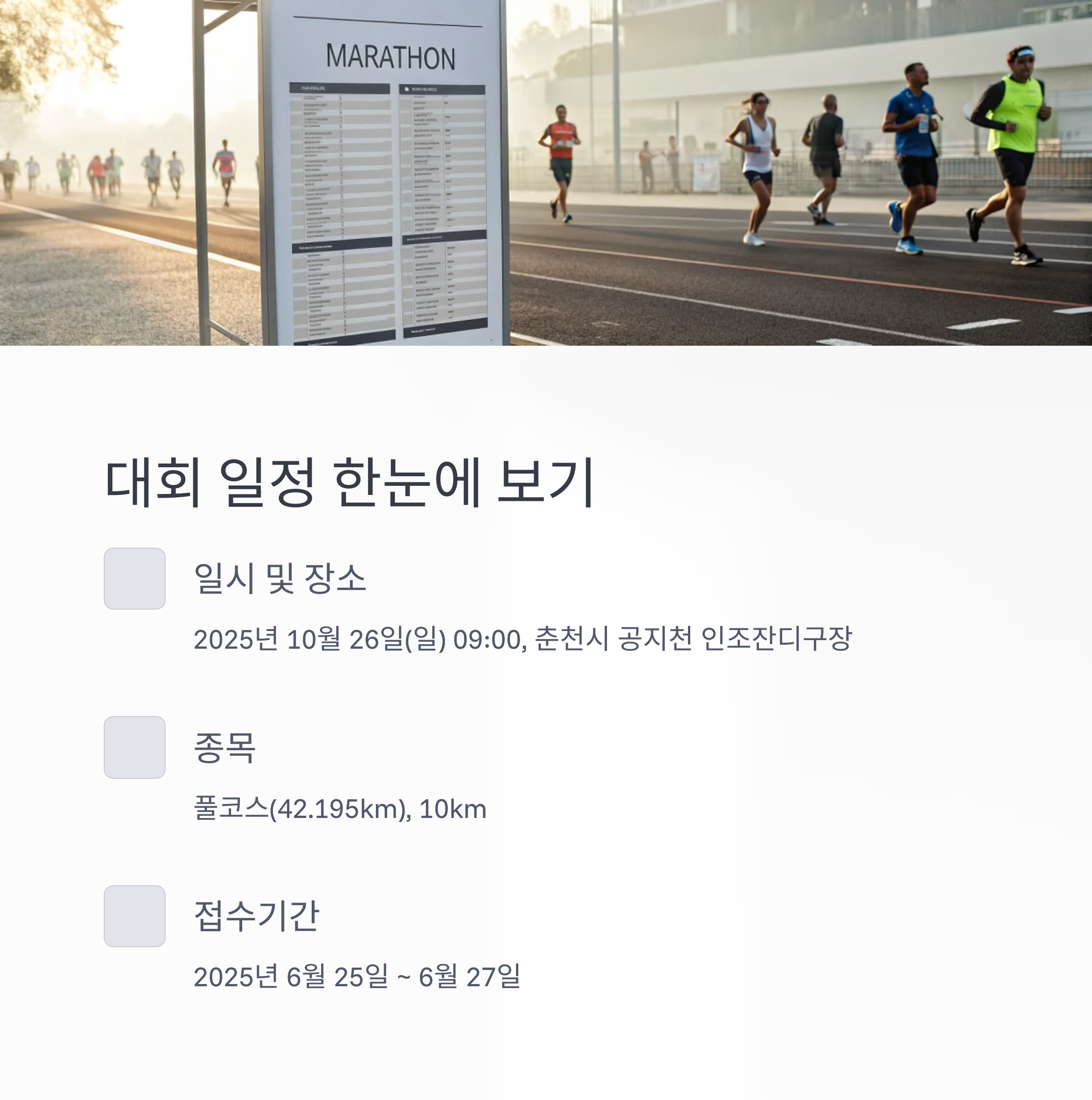 - 대회명: 2025 춘천마라톤