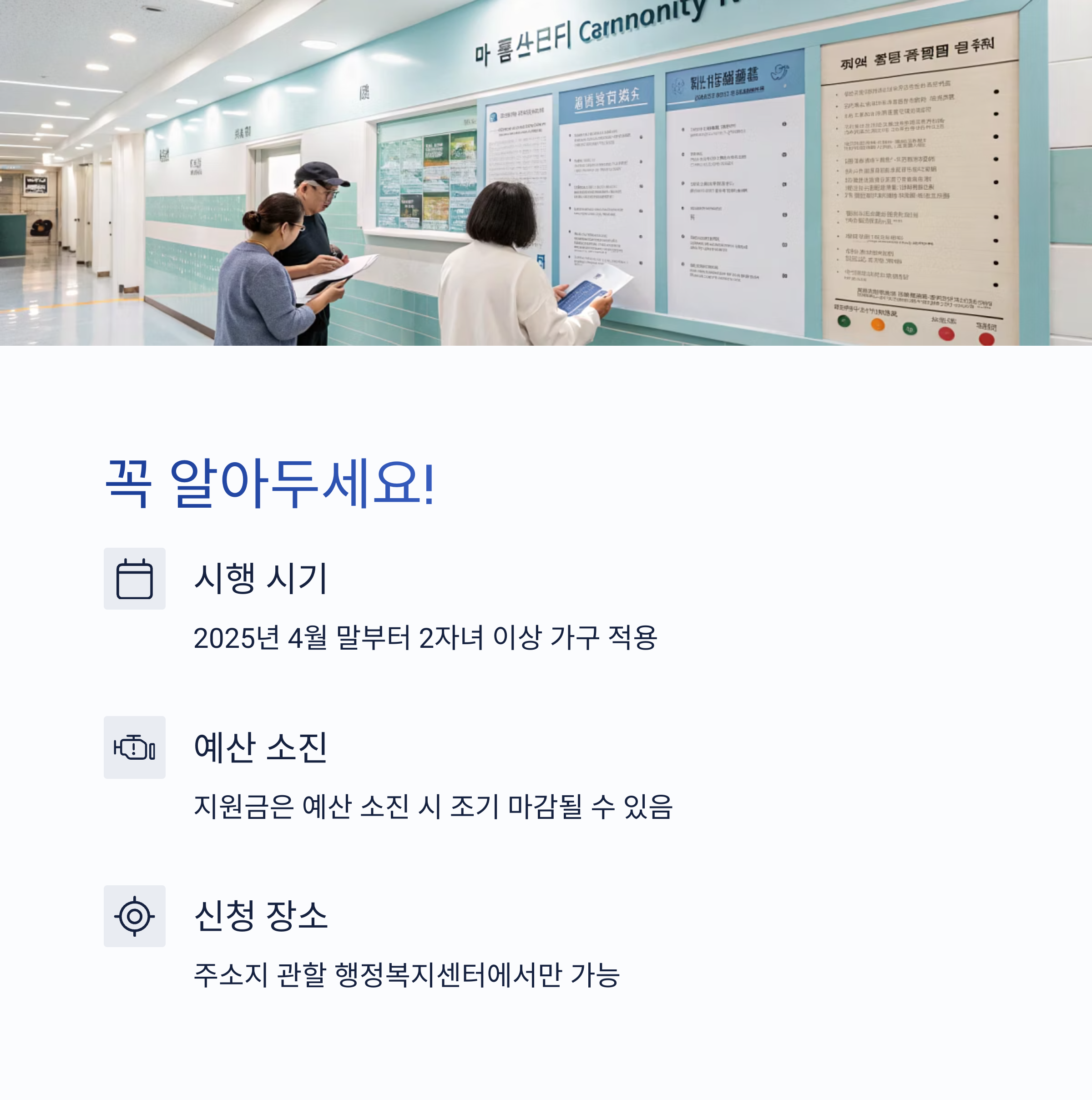 - 적용 기준: 2025년 4월 말부터 2자녀 이상 가구로 확대 시행