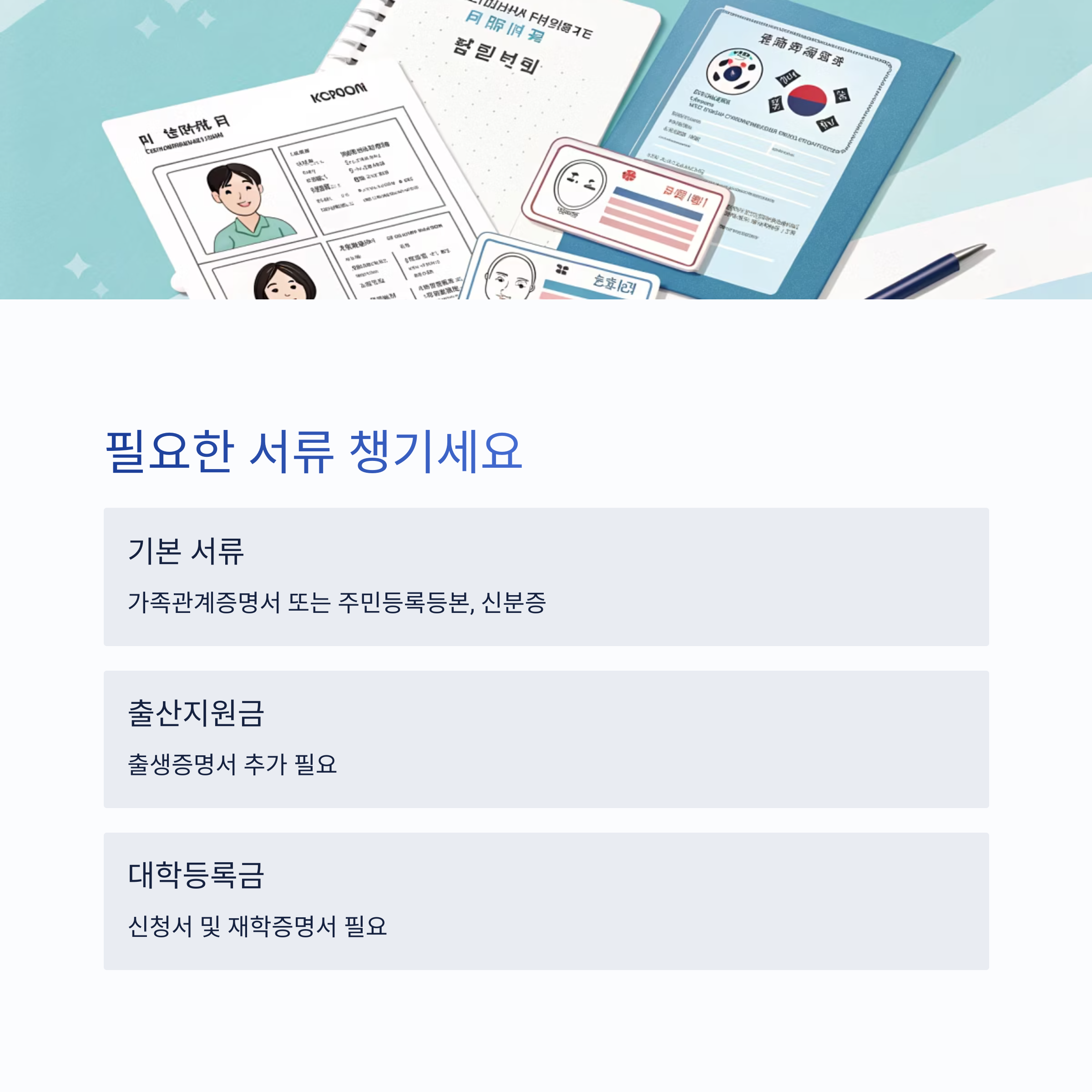 - 대학등록금 지원 신청서 및 재학증명서(해당 시)
